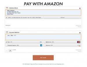 On the cart page, the customer is presented with the Amazon Pay button as an available payment method. When click, this button creates a popup that authenticates the user and logs them in to their Amazon account. Next, the customer is redirected to a custom page that displays Amazon Pay “widgets”. These widgets let the customer choose from their saved shipping addresses and credit cards stored in their Amazon account. When they’ve selected from both, they click “Pay Now”, and their order is processed. Commerce uses Omnipay to abstract payment methods, so the actual processing code is straightforward.